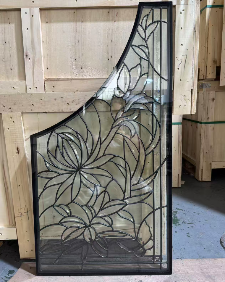 Di Inlaid Glass, kami menawarkan layanan kustomisasi untuk kaca pintu masuk kami yang berkualitas tinggi dan bergaya. Produk kami sangat cocok untuk menambahkan sentuhan keanggunan dan kecanggihan ke ruang interior apa pun.Dengan berbagai pilihan kami, Anda dapat memilih dari kaca pintu masuk besi dekoratif, kaca pintu masuk timbal dekoratif, dan kaca pintu masuk besi dekoratif sesuai dengan gaya dan preferensi unik Anda.